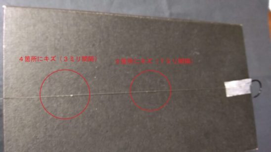 3ミリ等間隔のキズ4つと、7ミリ間隔のキズ2つ