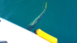 カヤックが沖へ流されながらも、性懲りもなくしゃくり続けていると、釣れたのはアジではなくサゴシ。さらに調子に乗って続けると、「サゴシカッター」によって貴重な小型ジグをロストしてしまいました…。