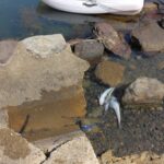 ネット情報によりますれば、ヒラメが居るポイントは「変化のあるところ」とのことでしたので、いつもどおり「沖テトラ」の周辺でカヤックを漂わせ、ビシバシキャストし倒します。