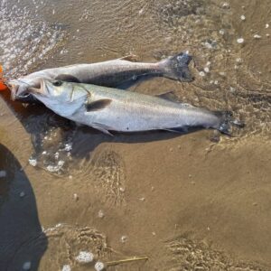 なぜいつもの相棒でないのかといいますと、ダツを釣る前に、相棒レガリスでシーバスとバトルをしたのですが、その際にPEラインを「ブツリ」と切られてしまい、リールごと交換したからです。