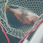ようやく浮かんできたお姿を見ると、赤色のマダイさんではなく、茶色のマゴチさんでした。