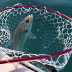 先日初釣果をあげたニューロッドのパワーは、相変わらず抜群であり、あっという間にカヤック脇まで寄せて、エラ洗いをされながらも、強引にタモ入れまで果たすことができました。