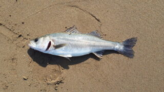 少々うねりが残っていましたので、あまり沖に出ず、テトラポッド付近でシーバスに照準を絞ります。初めて「ミノー」なるものを投げてみました。シンキングタイプということなので、ジグと同じくまずは着底。アクションについては「ただ巻き」中心で狙います。